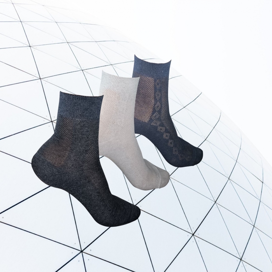 Шкарпетки чоловічі з сіточкою та високим паголенком, виготовлені з бавовняної пряжі. Для міцності в мисок і п'яту додано поліамідну нитку. В залежності від розміру можуть не співпадати з фото Гумка в бортику забезпечує гарну фіксацію на нозі без зайвих зусиль